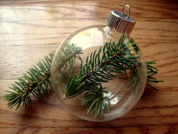Απλούστερο δεν γίνεται. Μία διαφανής μπάλα, ένα κλαράκι έλατου, ίσως κι ένα κορδελάκι ή λίγο γκλίτερ κι έτοιμο για το Χριστουγεννιάτικο δένδρο.