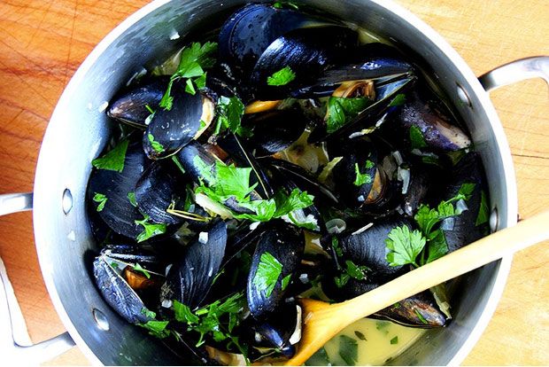 Έκανε το χταπόδι με τα κρεμμυδάκια ο Δημήτρης ο νεώτερος, λουκούμι και μια κατσαρόλα μύδια η υποφαινομένη. Δε θ’ αφήσουμε ούτε ένα και με το άδειο κέλυφος τους, πίνουμε όλοι το ζουμάκι που απέμεινε στο πιάτο μας.