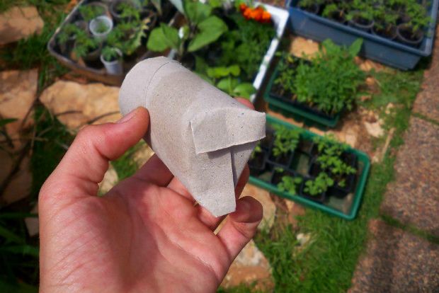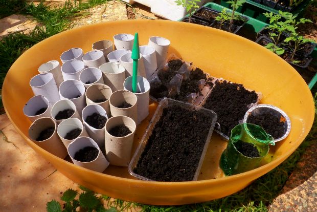 Ιδανικά είναι τα χαρτόνια που μένουν όταν τελειώσει το χαρτί υγείας ή κουζίνας. Επειδή είναι χάρτινα, θα διατηρήσουν την παραπανίσια υγρασία που έχουμε ανάγκη. Αρκεί να τα κόψουμε από το κάτω μέρος