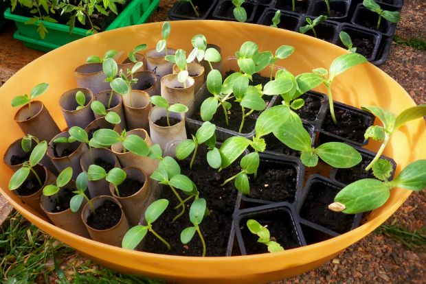 Τα κολοκυθάκια και τα αγγούρια, ειδικά όταν είναι σπορόφυτα, αγαπούν την υπερβολική υγρασία και επίσης αναπτύσσουν μεγάλη ρίζα πολύ γρήγορα. Για αυτό το λόγο θα τα σπείρουμε κατευθείαν σε μικρές γλάστρες με χώμα που συγκρατεί αρκετή υγρασία. Μπορούμε να κατασκευάσουμε αυτοσχέδιες γλάστρες από τα υλικά των προϊόντων που καταναλώνουμε και στο τέλος περισσεύουν.