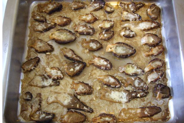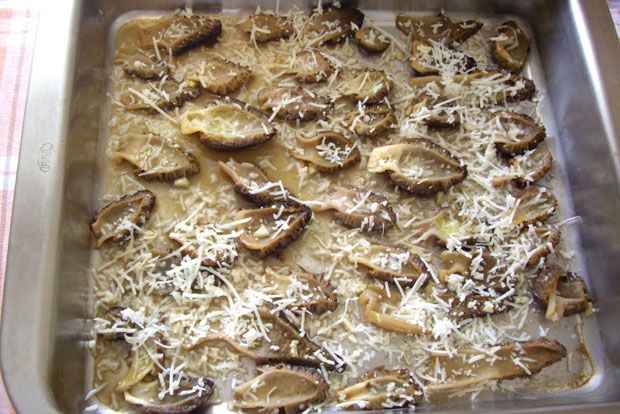 Πλένουμε τις μορχέλες και τις κόβουμε στη μέση και τις αραδιάζουμε σε λαδωμένο ταψί με το κοίλο μέρος προς τα πάνω.