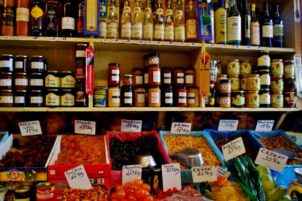 Θυμάμαι ακόμα ότι ο Jean-Pierre Coffe, εκείνος ο εντελώς sui generis γαστρο-κοσμικός δημοσιογράφος, έγραψε κάποτε πως «αρκεί να διαβείς το κατώφλι αυτού του μπακάλικου για να βρεθείς μεμιάς «αλλού», στην έρημο, στις στέπες, στις πάμπας στον Ισημερινό, στους πόλους, στη θάλασσα ή στις οροσειρές των Άνδεων». Κι είχε δίκιο γιατί όταν βλέπεις το χώρο νομίζεις πως ξεχείλισε το κέρας της Αμάλθειας κι έτσι ο Izraël και η Françoise Solsky-απόλυτα συμβατοί ως ζευγάρι- αναγκάστηκαν να στοιβάξουν την αφθονία που πλημμύρισε το μαγαζί τους σε πάγκους και ράφια, όπου διαφόρων ειδών καλούδια, άσχετα μεταξύ τους, γειτνιάζουν με ευχάριστα kitsch τρόπο, δημιουργώντας ένα ολόκληρο γευστικό σύμπαν. Ακόμα δεν ξέρω γιατί, από τότε ήδη, αποδεχτήκαμε πως τα ζαχαρωμένα φρούτα, τα κόντιτα, τα νουγκά, τα παστέλια, τα μάρτσιπαν και οι χαλβάδες δικαιούνται να συνυπάρχουν με το ταμπουλέ, το χούμους, τις ελιές, τα χαβιάρια, τους καφέδες, τον ταραμά και τα παστά ψαράκια, κάτω από αιωρούμενα σακουλάκια με λογιώ-λογιώ μπαχαρικά, σκόνες και μείγματα που συνθέτει μόνη της αυτή γηραιά πλέον, αλλά πάντα αισθαντική πατρόν του μαγαζιού.