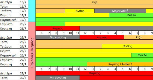 (11 – 13/7) είναι οι ημέρες καρπού, αρκετές για να σπείρουμε όψιμα κολοκύθια, ντομάτες και ό,τι άλλο τραβάει η όρεξη μας.