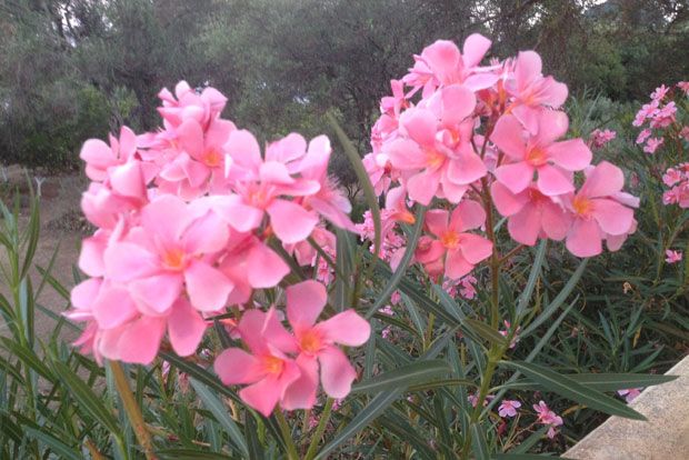 Τέταρτον, σε στρατηγικά σημεία βάζω όμορφες και ελληνικότατες πικροδάφνες που ανθίζουν πλούσια με μόνο ένα καλό πότισμα την εβδομάδα και προσθέτουν έντονο χρώμα. Επίσης ελάχιστο πότισμα θέλουν οι πολύχρωμες λαντάνες που φυτρώνουν και μόνες τους όπου βρουν λίγη υγρασία, και με συχνό κλάδεμα διατηρούνται πυκνές και ζωηρές.