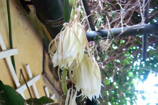 Το κακτοειδές αυτό επίφυλλο κατάγεται από τη Νότια Αμερική. Στο κλίμα μας επιζεί μεν αλλά με αραιή ανθοφορία, που το κάνει πιο ακριβοθώρητο. Σαν αποτέλεσμα η εμφάνιση του άνθους του, από μία έως τρεις φορές κάθε καλοκαίρι, αποτελεί γεγονός. Το φυτό βγάζει όλα τα μπουμπούκια μαζί. Το δικό μας είχε 12 την περασμένη εβδομάδα και άνθισαν διαδοχικά τρεις συνεχόμενες νύχτες. Η μία έτυχε να έχει πανσέληνο και να έχω καλέσει φίλους. Κανείς τους δεν είχε δει ανθισμένο το φυτό αυτό. Όλο το βράδυ πηγαινοερχόμασταν παρακολουθώντας σαν σήριαλ την εξέλιξη του από μπουμπούκι (στις 9 μ.μ.) έως ολάνοιχτο (κατά τις 11.30 μ.μ). Παίρναμε φωτογραφίες και το συζητούσαμε.