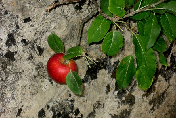 Η μηλιά που έχω στερεωμένη (espaliered) στη νότια πλευρά του τοίχου έχει ελάχιστα μήλα και όχι ιδιαίτερα νόστιμα αλλά τώρα που κοκκίνισαν χαίρεσαι να τα βλέπεις.