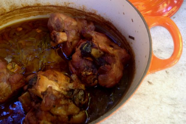 Ελέγχουμε κάθε ώρα και προσθέτουμε λίγο ζωμό αν έχει εξατμιστεί πολύ. Όταν το φαγητό είναι έτοιμο πρέπει να έχει αρκετή χυλωμένη σάλτσα και το κρέας να πέφτει απ’ τα κόκκαλα (Αν η σάλτσα εξακολουθεί να είναι αραιή, μπορούμε να την αλέσουμε μαζί με τα λαχανικά με το μαγικό ραβδί μπλέντερ).