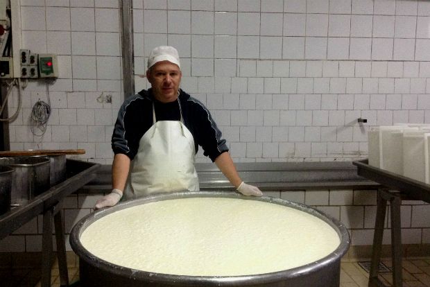 Μπαίνουμε στον κυρίως χώρο του τυροκομείου. Περνάμε από το μεγάλο καζάνι που σε λίγο θα πήξει τη φέτα και συνεχίζουμε στις αίθουσες με τα ανοξείδωτα δοχεία, όπου το τυρί αφήνει τα υγρά του. Ακολουθούν δωμάτια με ράφια με κίτρινα τυριά που ωριμάζουν και γεμίζουν τον χώρο ευωδιές. «Αυτή την εποχή δεν υπάρχει πολύ γάλα. Έχω σταθερούς βοσκούς από τον Κιθαιρώνα και αποκλειστικά από αυτούς παίρνω γάλα καθημερινά, όσο έχουν. Δεν το ανακατεύω με άλλο, θέλω τα τυριά και το γιαούρτι να μη χάνουν τη γεύση τους.» Τα πρόβατα και τα γίδια που βόσκουν στις πλαγιές του Κιθαιρώνα δίνουν γάλα με αρκετά λιπαρά και έντονο άρωμα και τούτο το τυροκομείο σήμερα είναι το μόνο στην περιοχή που το αξιοποιεί συστηματικά.