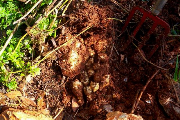 Το φθινόπωρο, όταν ξεραθεί το φυτό, μπορούμε να ξεριζώσουμε τους βολβούς του για να τους καταναλώσουμε. Από τη στιγμή που θα τους βγάλουμε από το έδαφος, θα διατηρηθούν ως και μία εβδομάδα προτού χαλάσουν. Επομένως είναι σοφό να κλαδέψουμε το πάνω τμήμα του φυτού, διατηρώντας το χαμηλότερο κομμάτι ως «σημαδούρα». Σκοπός μας είναι να συλλέγουμε κάθε φορά μόνο όσους βολβούς πρόκειται να καταναλώσουμε, διατηρώντας τους υπόλοιπους φρέσκους στο έδαφος. Ακόμα, όσο παραμένουν στο χώμα, με την πάροδο του χρόνου γλυκαίνουν και έχουν πιο νόστιμη γεύση, ιδιαίτερα σε κήπους σε βόρειες περιοχές που οι θερμοκρασίες είναι χαμηλότερες.