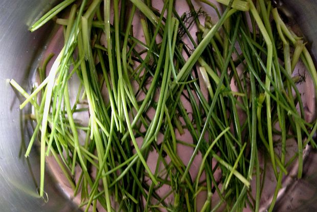Καταρχάς ζεματάμε για πολύ λίγο τα λαπαθόφυλλα και τα βάζουμε σε κρύο νερό. Μην τα ζεματίσετε για πολύ, θα καταστραφούν επειδή είναι πολύ λεπτά.