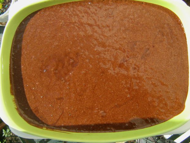 Στρώνουμε το μείγμα της σοκολάτας πάνω από τα σαβουαγιάρ και βάζουμε το πιρέξ στο ψυγείο μέχρι να πήξει, για τουλάχιστον μια ώρα. (Σ’ αυτό το σημείο μπορούμε να καταψύξουμε την τούρτα για περίπου 20 ημέρες μέχρι έναν μήνα ή απλά να την αφήσουμε στην ψύξη για τρεις – τέσσερις ημέρες).
