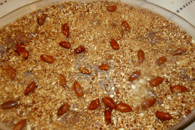 Στολίζουμε με τα ολόκληρα καραμελωμένα αμύγδαλα και η τούρτα μας ολοκληρώθηκε.
