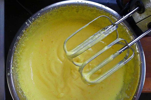 Με σίρμα ή με το μίξερ του χεριού – εγώ αυτό χρησιμοποιώ – ανακατεύετε διαρκώς το μίγμα, μέχρι να δέσει. Κατεβάστε από τη φωτιά και συνεχίστε να ανακατεύετε για 1 λεπτό ακόμη.