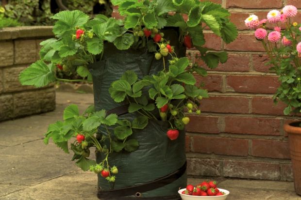 Μία πολύ απλή λύση είναι η ειδική σακούλα για φράουλες, την οποία μπορούμε να παραγγείλουμε μέσω Ίντερνετ. Εύχρηστη, ελαφριά και σε καλή τιμή – μπορεί και να κρεμαστεί με ειδική πατέντα.
