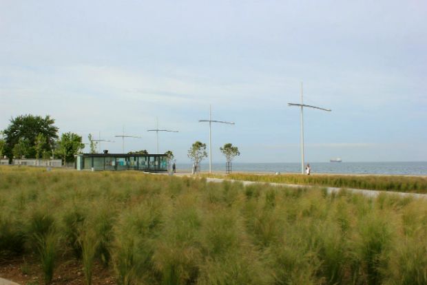 Όμως, όπως πολύ σωστά σκέφτηκαν οι μελετητές του έργου της ανάπλασης, αρχιτέκτονες Πρόδρομος Νικηφορίδης και Bernard Cuomo, το φυτό αυτό «συνεργάζεται» πολύ καλά με τον αέρα. Αυτή ακριβώς είναι η τσαχπινιά της στίπας: τη βλέπεις να γέρνει, να γυρνά, να ακολουθεί την κίνηση από το αεράκι που έρχεται από τη θάλασσα. Το ίδιο κάνουν και οι πίδακες από τα συντριβανάκια νερού που έχει λίγο παραπέρα. Αριστούργημα!