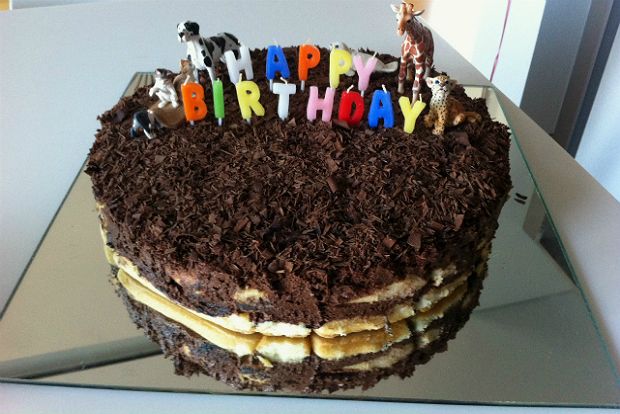 Μέχρι να σταθεροποιηθεί αρκετά η μους, ξύνετε υπομονετικά μ’ ένα μαχαιράκι την κουβερτούρα για το στόλισμα, προσπαθώντας να πετύχετε σοκολατένιες κορδελίτσες – ή κάτι τέτοιο τέλος πάντων – τις οποίες θα σκορπίσετε στην επιφάνεια της τούρτας μέχρι να καλυφθεί ολόκληρη. Όταν έρθει η ώρα του σεβιρίσματος, θα περάσετε γύρω-γύρω στο τσέρκι ένα μαχαίρι βουτηγμένo σε ζεστό νερό και θα το τραβήξετε. Μόλις τοποθετηθούν κεράκια, ζωάκια και λοιπά διακοσμητικά, ετοιμαστείτε για το happy birthday!