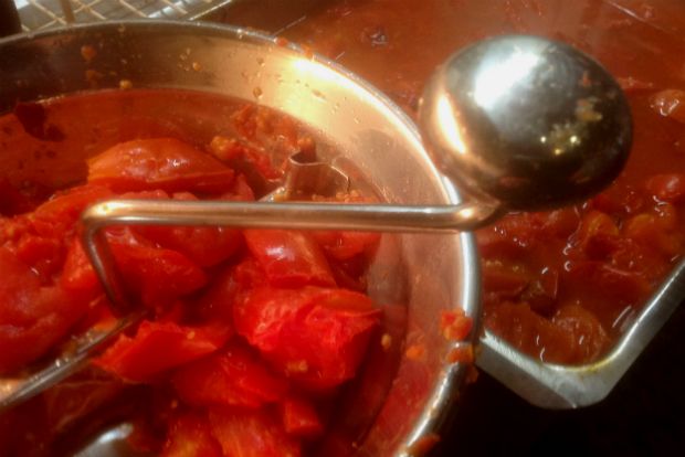 Τις επόμενες μέρες θα σας μιλήσω και γι’ άλλους θησαυρούς του καταψύκτη. Θα αρχίσω σήμερα με τον πιο χρήσιμο, τη βασική σάλτσα ντομάτα, που φτιάχνω απ’ τις ντομάτες μας. Ορίστε οι οδηγίες. Δεν σας δίνω ποσότητες, γιατί δεν έχουν σημασία στη συγκεκριμένη περίπτωση.