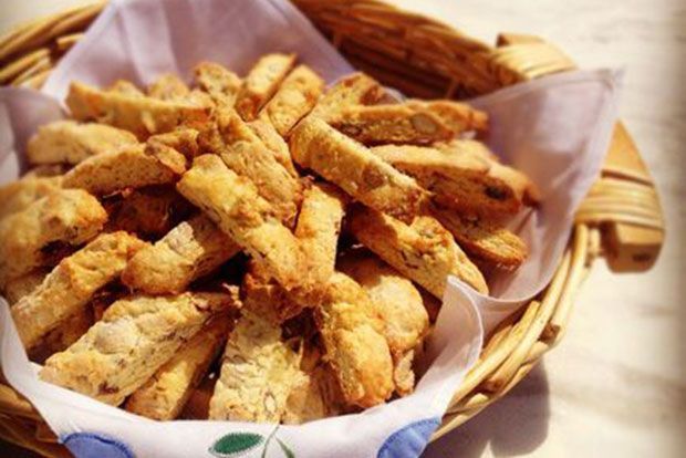 Η Αναστασία Λαμπρία βρίσκει, όχι άδικα, το ζύμωμα ψυχαμοιβό και προνοεί για νύχτες λιγούρας και αγρύπνιας με τα μυρωδάτα καντουτσίνι εκ Τοσκάνης, μπουκίτσες παιχνιδιάρικες. Αμύγδαλο σχεδόν σε κάθε δαγκωνιά – όχι πως δεν ταιριάζουν και για βουτιές στον πρωινό διπλό εσπρέσο.