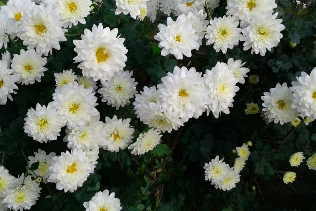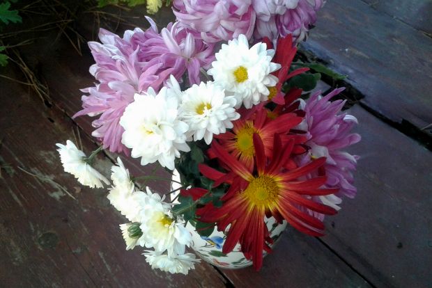 Απογευματινή επίσκεψη στο σπίτι της γιαγιάς και, όσο την περιμένω να ετοιμαστεί για να φύγουμε, πέφτει το βλέμμα μου στις πλουμιστές γλάστρες με τα χρυσάνθεμα. Όαση ο κηπάκος της, ξεκουράζονται τα μάτια από το φουλ της γιούκας στα γειτονικά μπαλκόνια. Τα θυμάμαι εκεί, ολόιδια, σχεδόν από πάντα και μου το επιβεβαιώνει: είμαστε συνομήλικοι, οι ίδιες ρίζες δίνουν λουλούδια εδώ και 25 χρόνια! Δεν γνωρίζω ούτε εγώ ούτε εκείνη πώς ονομάζονται οι ποικιλίες, είναι τα κόκκινα, «τα παρδαλά» όπως τα λέει, πελώρια και υγιέστατα. Παραδίπλα τα λευκά, μικρότερα αλλά μπόλικα, «τα αριστοκρατικά» κατά την άποψή της, και κάτι ζωηρά ροζ που τα λέει τρελλιάρικα, γιατί έχουν σχήμα ακανόνιστο. Αν και αδαής στα του κήπου σκέφτηκα να την ρωτήσω μερικά κόλπα για τη φροντίδα τους. Ιδού, λοιπόν, τα μακρόβια χρυσάνθεμα της γιαγιάς και τα μυστικά τους.