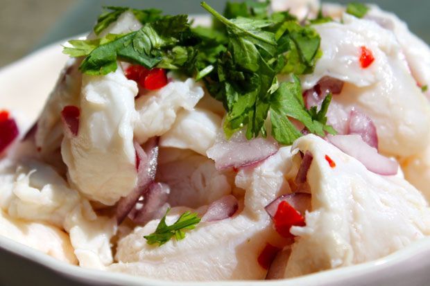 Μαριναρισμένο για ώρες, ψημένο από το αλάτι και το λάιμ, χωρίς κανένα άλλο μαγείρεμα να μεσολαβεί μέχρι το σερβίρισμα, ιδού το ceviche της Λεονί Σταφυλά με ρίζες νοτιο – κεντροαμερικάνικες: φρέσκο, ολόφρεσκο ψάρι, κομμένο σε φιλέτα ή λωρίδες, βουτηγμένο σε νόστιμη μαρινάδα και κλεισμένο στο ψυγείο για 8 τουλάχιστον ώρες. Δροσερό και μαζί πικάντικο, για εξαιρετικούς ουρανίσκους, σερβίρεται σχεδόν ωμό, με φρεσκοκομμένα λαχανικά.