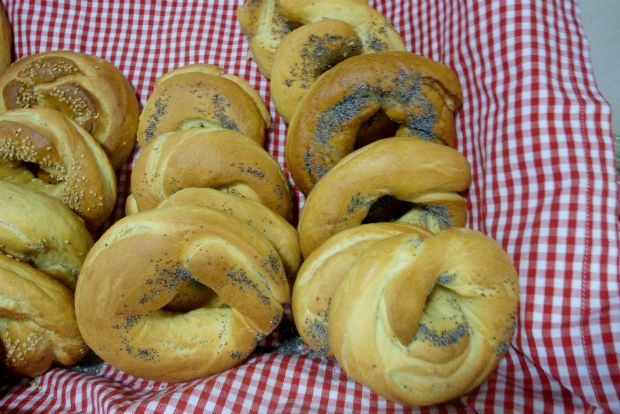 Ψωμάκια στρογγυλά και αφράτα, γευστικά ακόμα και σκέτα. Ζύμη απλή ή με λιαστή ντομάτα, ολικής άλεσης ή με παπαρουνόσπορο. Κάθε πρωί ζυμώνονται και ψήνονται εκεί, πίσω από την μπεζ κουρτίνα κρύβεται το μικρό εργαστήριο, κατόπιν υπομονετικά μένουν στα ράφια. Όχι για πολύ, όσο μεσημεριάζει λιγοστεύουν επικίνδυνα. Πριν γεμιστούν κόβονται στη μέση, περνάνε από τη φρυγανιέρα δυο-δυο για λίγο, έτσι γίνονται τραγανά έξω και μαλακά μέσα.