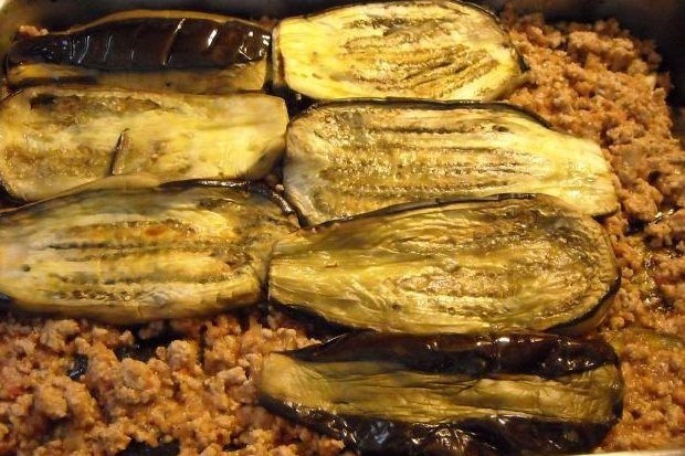 Αν θέλετε, υπάρχει και η διαδικασία του τηγανίσματος. Τηγανίζουμε ελαφρά τις μελιτζάνες και τις αφήνουμε να στραγγίξουν τα πολλά λάδια σε σουρωτήρι. Η επιλογή είναι δική σας. Ετοιμάζουμε τον κιμά, σε κατσαρόλα βάζουμε το κρεμμύδι χοντροκομμένο με λίγο νεράκι κι όταν βράσει λίγο προσθέτουμε 1/2 ποτήρι κρασιού λάδι, σοτάρουμε ελαφρά και προσθέτουμε τον κιμά. Συνεχίζουμε το σοτάρισμα κι όταν ο κιμάς μας έχει σοταριστεί προσθέτουμε τις ντομάτες, αφού τις έχουμε περάσει από το μπλέντερ, το σκόρδο αλάτι και πιπέρι. Βράζουμε μέχρι να εξατμιστούν εντελώς τα υγρά.