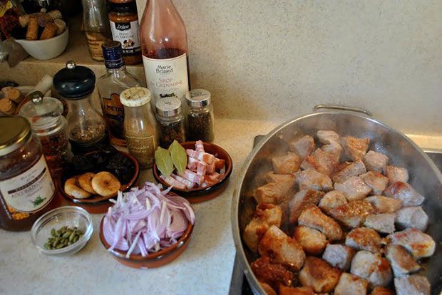 - 1 ½ κιλό σπάλα χοιρινή χωρίς λίπη, κομμένη μεγάλες μπουκιές