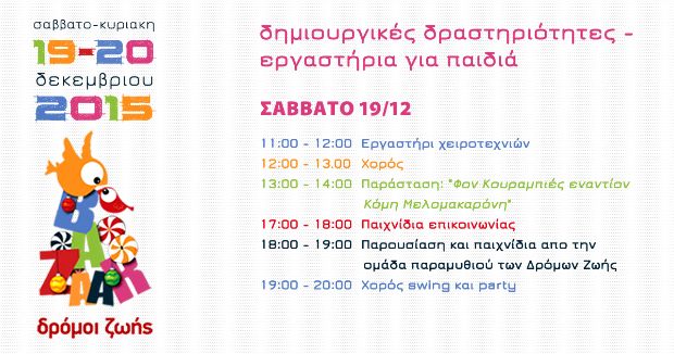 Ωράριο: Σάββατο 19 Δεκεμβρίου: 10:00 – 22:00, Κυριακή 20 Δεκεμβρίου: 10:00 – 20:00