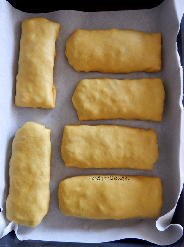Πλάθουμε τα κομμάτια αυτά σε μπαλάκια και τα σκεπάζουμε με μια νωπή πετσέτα, ώστε να μην ξεραθούν όση ώρα δουλεύουμε. Παίρνουμε το πρώτο κομμάτι, το πλάθουμε σε μπάλα και ανοίγουμε ένα ορθογώνιο φύλλο.