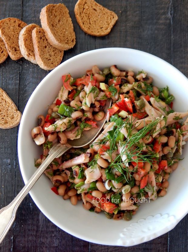 Σαλάτα με μαυρομάτικα φασόλια και καπνιστή πέστροφα