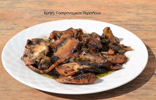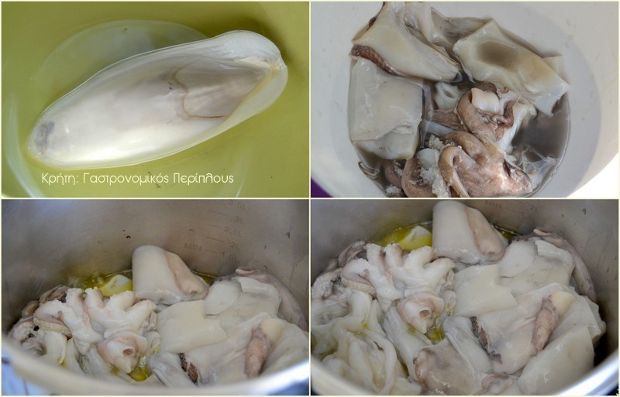- Όπως θα παρατηρήσατε, αλάτι στα υλικά δεν έχω. Είναι γιατί τις σουπιές, όπως και άλλα θαλασσινά, «τις έχει αλατίσει η θάλασσα», που λέει η μάνα μου. Τώρα γιατί δεν αλατίζει και τα ψάρια, δεν ξέρω. Παρόλα αυτά, δοκιμάστε κανένα πλοκαμάκι πριν ρίξετε το κρασί, μήπως χρειαστεί κανένα κλαδί αλάτι, όπως λέμε εδώ στην Κρήτη τη μικρή ποσότητα αλατιού…