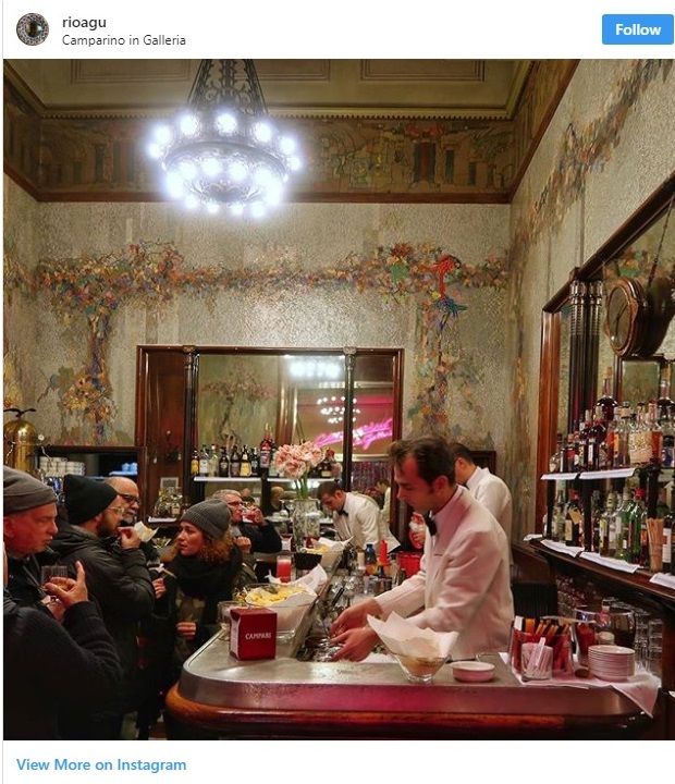 Το 1915 άρχισε να λειτουργεί και το «Camparino», ένα μπαρ στο κέντρο του Μιλάνου δίπλα στο Ντουόμο, που σύντομα έγινε ένα από τα σύμβολα της πόλης μαζί με τη μόδα και το ιταλικό ντιζάιν, και εξακολουθεί να λειτουργεί πάντα στο ίδιο σημείο.