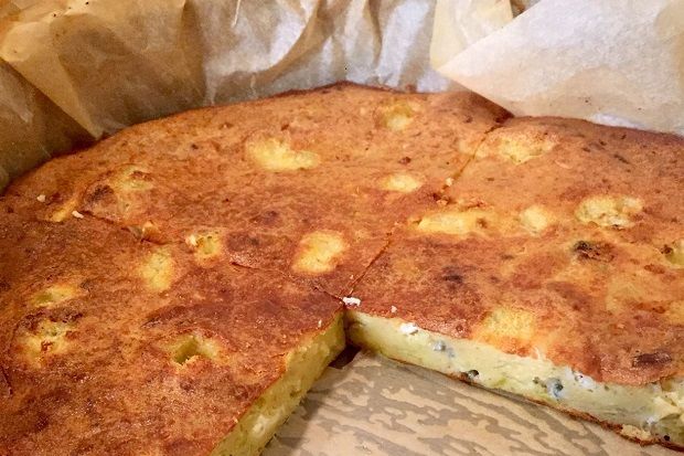 Παραλλαγή αλευρόπιτας με μπλε τυρί και πράσα