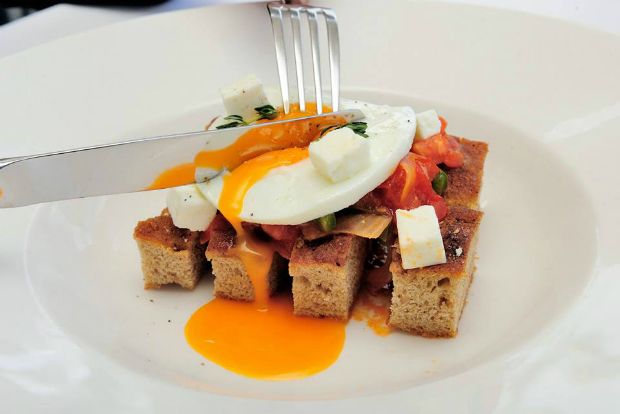Η ιδέα φαίνεται απλή: ψωμί, σαλάτα με ντομάτα, τυρί φέτα και αυγό. Μα στις λεπτομέρειες αποδεικνύεται μεγαλειώδης: προπύρα σπετσιώτικη, ζεστή χωριάτικη σαλάτα, για να δέσει ωραία με το όλον, φέτα διαλεχτή και ο κρόκος του αυγού να σπάει ηδονικά από πάνω. Ο Σταμάτης Μαρμαρινός, σεφ του ιστορικού (από το 1914, παρακαλώ) ξενοδοχείου των Σπετσών “Ποσειδώνιο”, μας χάρισε γενναιόδωρα τούτη τη συνταγή. Μπορεί ο πολυμήχανος σεφ να σημείωσε μόλις την πρώτη του σεζόν εκεί, φέτος το καλοκαίρι, μα οι εντυπώσεις που άφησε στους επισκέπτες είναι μόνο ενθουσιώδεις. Όσα θαυμαστά έγιναν στο μποστάνι και τις κουζίνες του ξενοδοχείου τα καταγράφει εδώ κατατοπιστικά η Κική Τριανταφύλλη. Πιάτα φροντισμένα, όσο πρέπει παραδοσιακά στα υλικά τους, όσο πρέπει φρέσκα και μοντέρνα στο στήσιμο. Όπως ακριβώς και τούτο εδώ το – ας το πούμε – brunch.