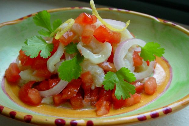 Μπακαλιάρος σαλάτα με κρεμμύδι, ντομάτα και λεμόνι
