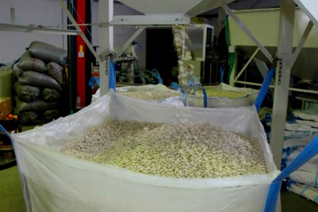 Η συγκομιδή τους σχετικά σύντομη σε διάρκεια, εκτυλίσσεται τούτη την περίοδο, από τις αρχές Οκτωβρίου ως τα μέσα Νοεμβρίου, εξαρτημένη πάντοτε από τις βροχοπτώσεις. Τα φασόλια φτάνουν στη μονάδα, περνούν από τη φάση της διαλογής, όπου μηχανήματα και ανθρώπινο δυναμικό συνεργάζονται για να φιλτράρουν αποτελεσματικά τη σοδειά. Ωριμάζουν για περίπου δύο εβδομάδες σε σακιά και στη συνέχεια συσκευάζονται για να καταναλωθούν το πολύ μέσα σε δύο χρόνια.