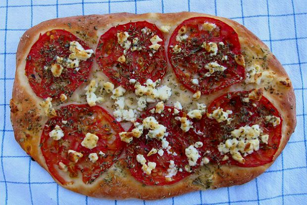 Στις δοκιμές μας φτιάξαμε τρεις: μια τύπου λαγάνας με χοντρό αλάτι, σουσάμι και μαυροκούκι, μία με ντομάτα φέτα και ρίγανη και μία με σκόρδο και δεντρολίβανο. Εσείς μπορείτε να αυτοσχεδιάσετε όσο θέλετε. Όταν έχω εδώ παιδιά σκοπεύω να την δοκιμάσω και με ζάχαρη και φρούτα.