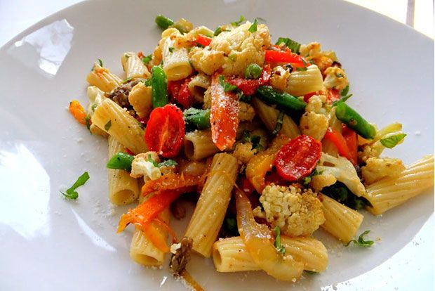 Ως εδώ ήταν ο μπελάς. Ανακατεύουμε καλά τα βρασμένα ζυμαρικά με τα λαχανικά προσθέτοντας ασφαλώς επιπλέον ελαιόλαδο και τα μυριστικά: βασιλικό και μαϊντανό. Πασπαλίστε με τριμμένο τυρί και it’s show time!