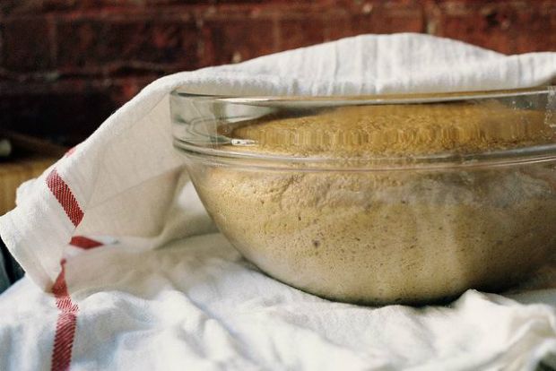 Το αφήνουμε σε ζεστό μέρος για να φουσκώσει- χρειάζεται περίπου 3 ώρες-  και να διπλασιαστεί.