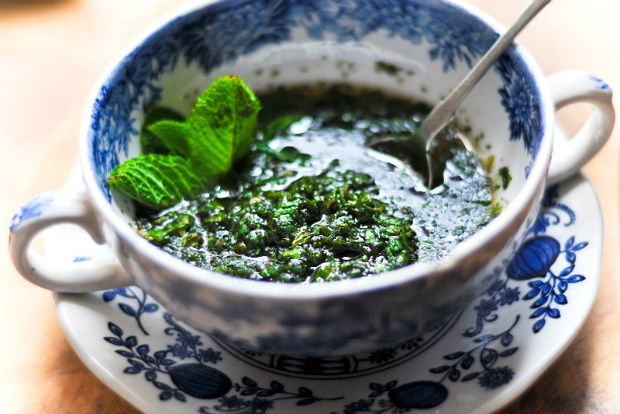 Διασκευή της κλασικής αγγλικής Mint Sauce, για περίπου 1 και ¼ φλιτζάνι