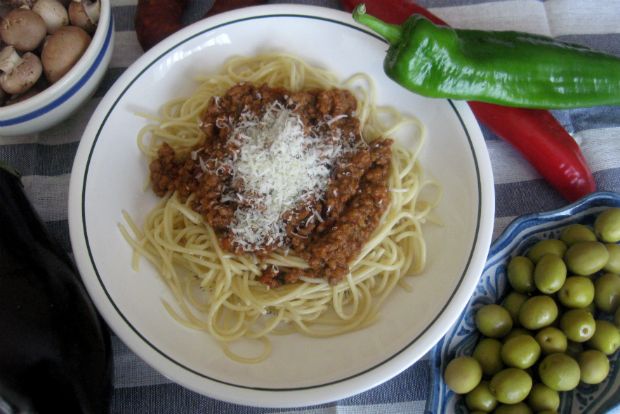 Λοιπόν, στα μακαρόνια αυτά ο κλασσικός κιμάς εμπλουτίζεται (ή μπασταρδεύεται- ανάλογα με την άποψή σας) με διάφορα πρόσθετα υλικά. Η βασική συνταγή είναι η ίδια που ξέρουμε: με κιμά, κρεμμύδι, ντομάτα, κανέλλα ή γαρύφαλλο και μαϊντανό. Δε θα σας δώσω τη συνταγή, γιατί ο καθένας έχει την δική του, μόνο θα σας δώσω δύο συμβουλές. Μη ζητήσετε από τον χασάπη τον άπαχο κιμά της μόδας… δεν κάνει γι’ αυτή την συνταγή.