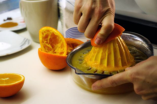 Πρώτα από όλα στύβουμε 2-3 πορτοκάλια, τα βάζουμε σε ένα μεγάλο μπολ