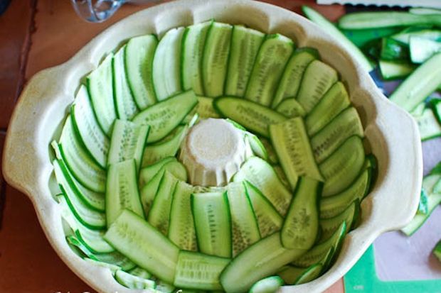 Αφήνουμε την φόρμα στο ψυγείο για 2 ώρες (το αγγούρι βγάζει υγρά αν την αφήσουμε περισσότερο).