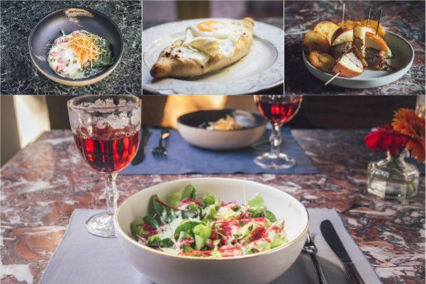 Φτιάχνει αυγά καγιανά και τα σερβίρει πάνω σε χωριάτικο ψωμί με προζύμι, αλλά και κλασικό πεϊνιρλί της Δροσιάς (σε μια πιο φίνα εκδοχή) με ένα αυγό μάτι στην κορυφή του, θυμάται την κρεατόπιτα των προγόνων του με πρόβειο κρέας και τραχανά και ένα φύλλο που συγκλονίζει με τη γεύση του, ρεβυθοσαλάτα με πιπεριά Φλωρίνης, κύμινο, μυρωδικά και φέτα Βυτίνας, τραχανόσουπα βεβαίως (με ξινό τραχανά αλλά εγώ θα την προτιμήσω με γλυκό ως Ρουμελιώτισσα, γιατί τέτοιον κάνουμε στο σπίτι μου) με απάκι και μετσοβίτικη γραβιέρα αλλά και ένα καταπληκτικό μπέργκερ, ζουμερό και πεντανόστιμο, όχι με κρέας αλλά με θαλασσινά (καλαμάρι και γαρίδα), σως ταρτάρ και αβοκάντο, που όμοιό του δεν έχω ξαναδοκιμάσει.