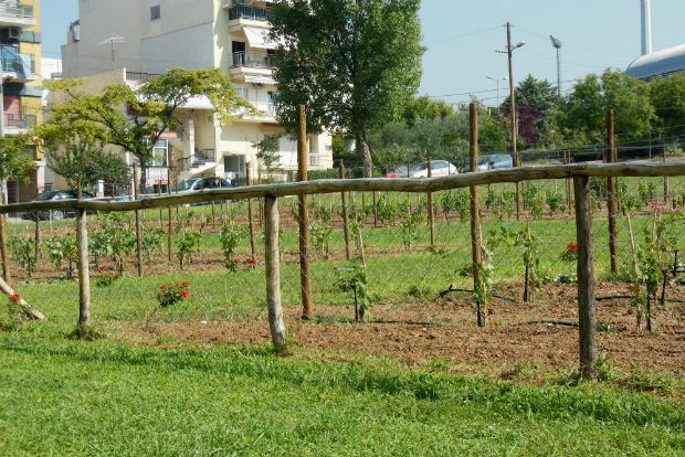 Σ’ ένα σημείο κέντρο-απόκεντρο, απέναντι ακριβώς από το Καυταντζόγλειο Στάδιο, έχει δημιουργηθεί ένας αμπελώνας δυο στρεμμάτων. Εκεί βρισκόταν ένα μηχανοστάσιο του δήμου Θεσσαλονίκης, που κάποια στιγμή μετακόμισε και το σημείο αφέθηκε ως αλάνα. Χάλι μαύρο. Η απόφαση της αντιδημαρχίας Ποιότητας Ζωής ήταν να μετατραπεί σε χώρο πρασίνου. Ο αντιδήμαρχος Κωνσταντίνος Ζέρβας γνώριζε την πρόθεση του Βαγγέλη Γεροβασιλείου να αναλάβει τη συντήρηση ενός πάρκου της πόλης. Αυτό μεταφέρθηκε και στον δήμαρχο Γιάννη Μπουτάρη. «Και γιατί δεν κάνουμε έναν αστικό αμπελώνα όπως έχουν στο Παρίσι;» πρότεινε ο Μπουτάρης. Κι έτσι έγινε και η παλιά αλάνα μεταμορφώθηκε σε μια όμορφη εστία πρασίνου, χαρά Θεού.