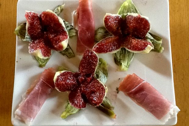 Για σήμερα, ας αρκεστούμε να τα φάμε τα ολόδροσα αυτά άνθη – παρτέρια απλώς φρεσκοκομμένα από το δέντρο, όπως είχα ήδη την ευκαιρία να συστήσω. Κι ας μη παρεξηθεί το “ολόδροσα” που μόλις πρόλαβα να πω. Ποτέ, παρακαλώ, στο ψυγείο τα σύκα, τα χαιρόμαστε πραγματικά μόνο σε θερμοκρασία… κήπου. Κι αν θέλουμε οπωσδήποτε παρτενέρ για τα λουλουδιασμένα παρτέρια μας, το προσούτο Πάρμας (ελαφριά καπνιστό κατά προτίμηση), είναι ένας πολύ άξιος συνοδός τους. Για ένα πρωινό ή και μεσημεριανό κολατσιό ο συνδυασμός του μελωμένου σύκου με το άψητο αλλά κατάλληλα επεξεργασμένο χοιρομέρι είναι ασύγκριτα καλύτερος απ’ ό,τι το διαδεδομένο πεπόνι – προσούτο. Κλείνω σημειώνοντας πως στη φωτογραφία του χρονογραφήματος, επίτηδες άφησα να διακρίνονται και τα φλούδια – φύλλα που αγκαλιάζουν και προστατεύουν το κλειστό μας λουλούδι. Όχι μόνο για διακοσμητικούς λόγους, όπως λόγου χάρη σ’ ένα βάζο ταιριάζουμε τα πολύχρωμα άνθη με λογής λογής πρασινάδες. Αλλ’ επειδή καλά πλυμένα και απαλλαγμένα από τυχόν ενοχλητικές σκόνες, τρώγονται απολαυστικά και οι φλούδες του ωραιότερου ίσως αυτού δώρου του καλοκαιριού, που μας έρχεται μ’ ένα τόσο κομψό περιτύλιγμα.