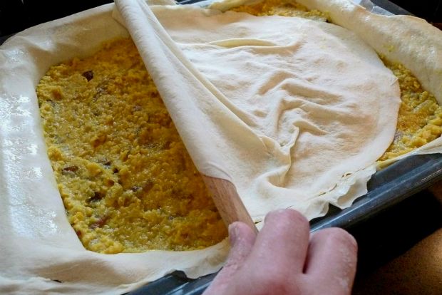 Τώρα που ανοίγω φύλλο, φτιάχνω συχνά το απλό, θεσσαλικό γλυκό που μου έμαθε η μακαρίτισα Λούλα Μπάιπα από τη Σούρπη, αδελφή της πεθεράς μου, από τις καλύτερες μαγείρισσες που έχω γνωρίσει. Την φτιάχνω τώρα το χειμώνα και πάντα σαν επιδόρπιο στο τραπέζι του Πάσχα.