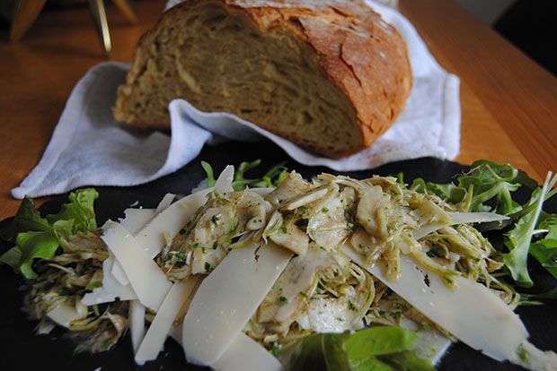 Σαλάτα από αγκινάρα με αρσενικό Νάξου και φυστίκια Αιγίνης