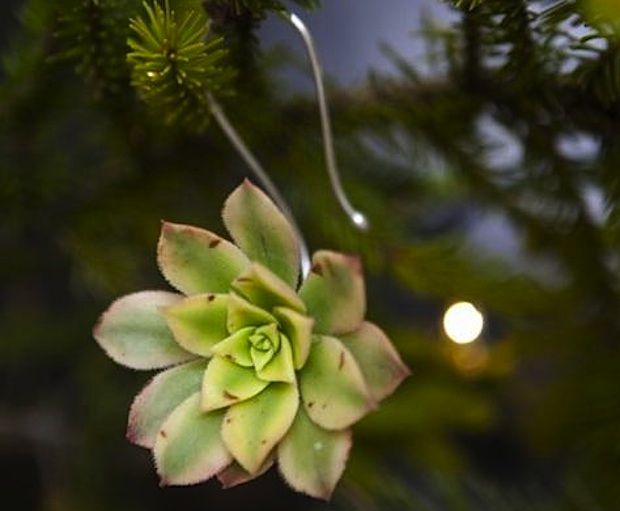 To succulent της φωτογραφίας είναι ολοζώντανο, αντέχει αρκετές βδομάδες κι αφού περάσουν οι Γιορτές φυτεύεται σε γλαστράκι χωρίς πρόβλημα. Η ιδέα είναι της Flora Grubb, που τα πουλάει στο Σαν Φρανσίσκο προς $19 το ένα αλλά φτιάχνονται πολύ εύκολα. Αρκεί να μην καταστρέψουμε την ρίζα βάζοντας το γατζάκι για το κρέμασμα.