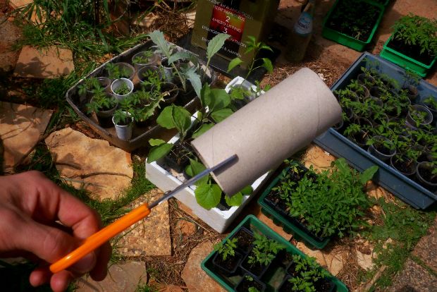 Ιδανικά είναι τα χαρτόνια που μένουν όταν τελειώσει το χαρτί υγείας ή κουζίνας. Επειδή είναι χάρτινα, θα διατηρήσουν την παραπανίσια υγρασία που έχουμε ανάγκη. Αρκεί να τα κόψουμε από το κάτω μέρος